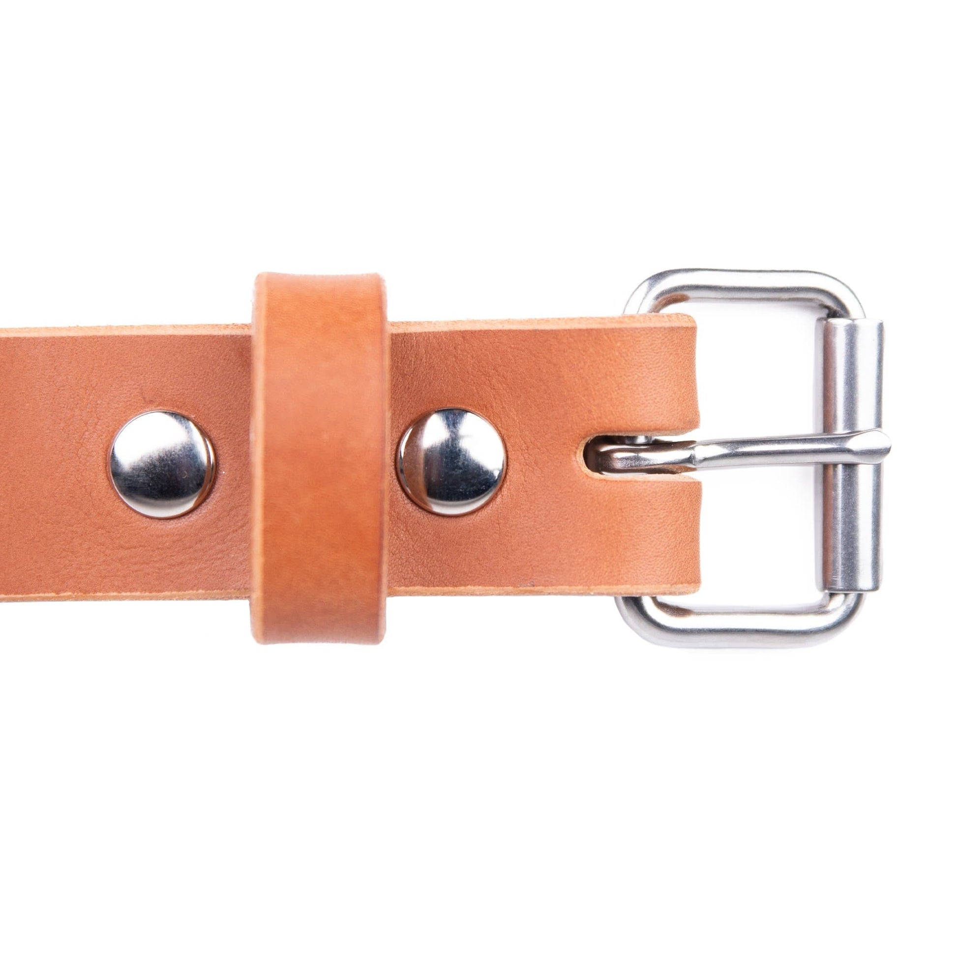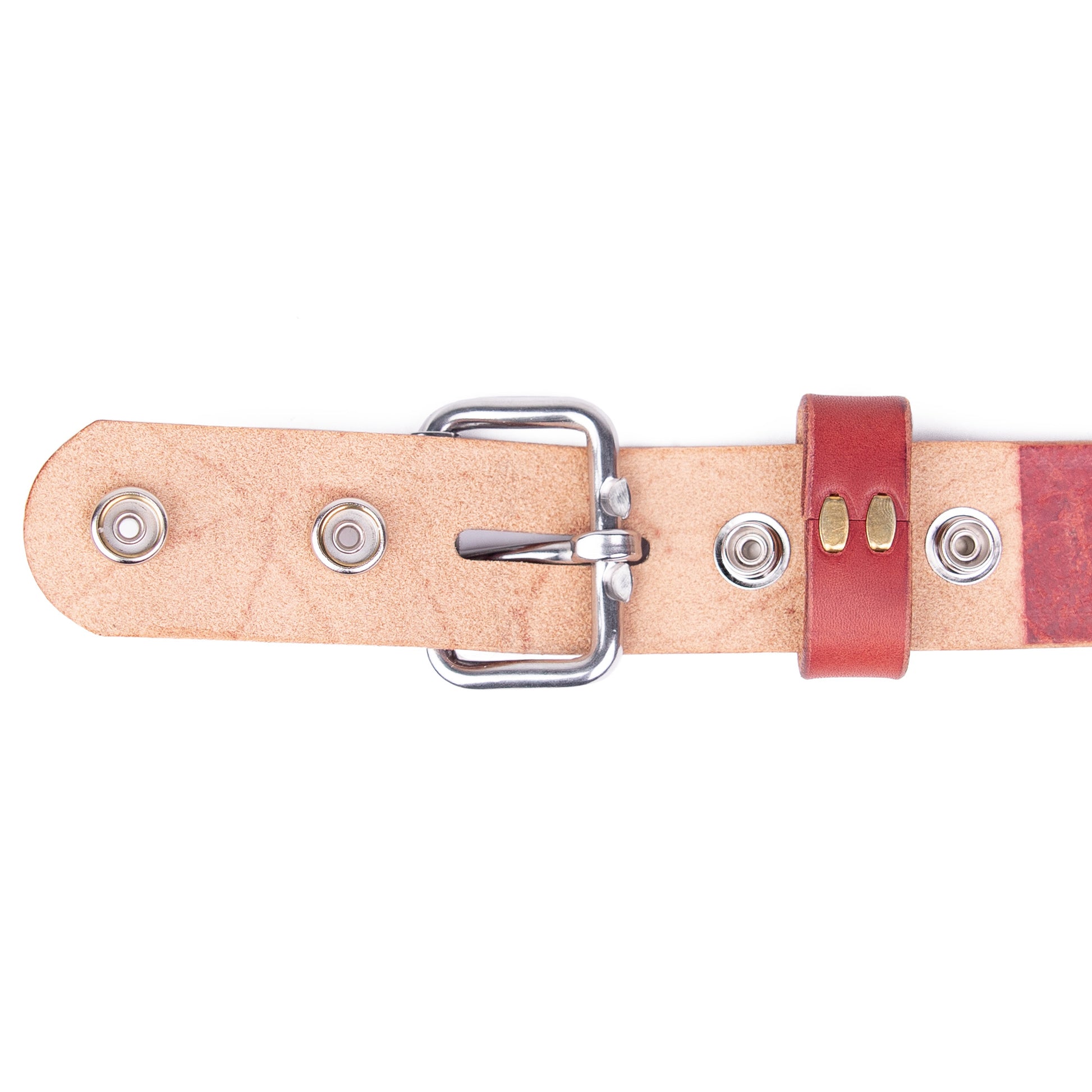 American-made with a lifetime replacement guarantee for breakage. Literally the last belt you will ever need to buy! Made from some of the highest quality, domestic leather available. The belt is constructed with heavy-duty bridle leather 1.5" wide 3/16" thick, a heavy-duty nickel roller style buckle, and quality snaps to change the buckle out. This belt is thick and like any natural leather product, it will need some time to break in. The shade will deepen and it will become molded to your shape and will be comfortable for many years to come! Made to last decades - no cardboard or junk leather!