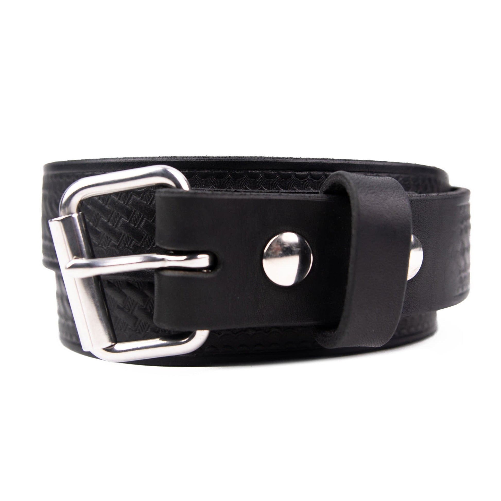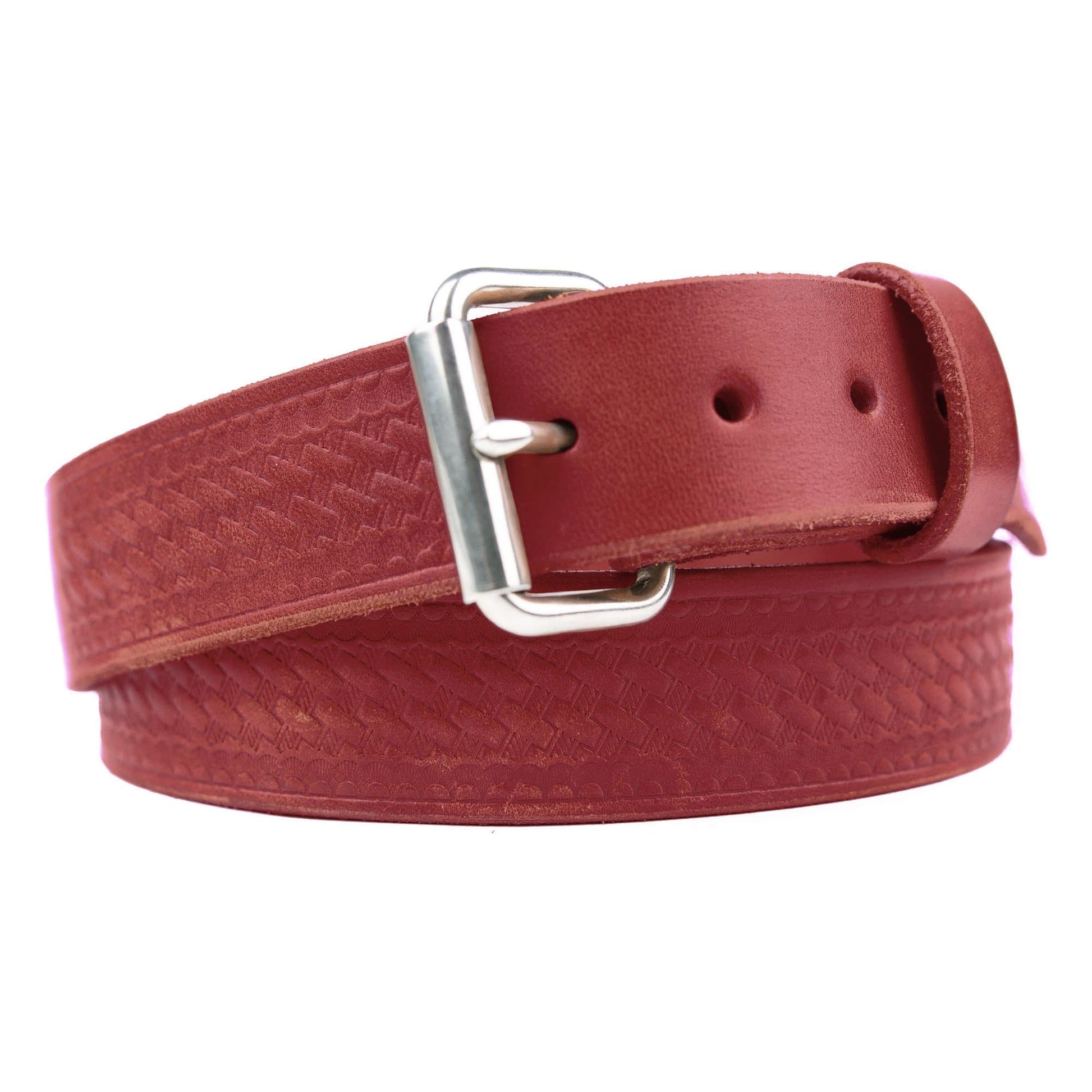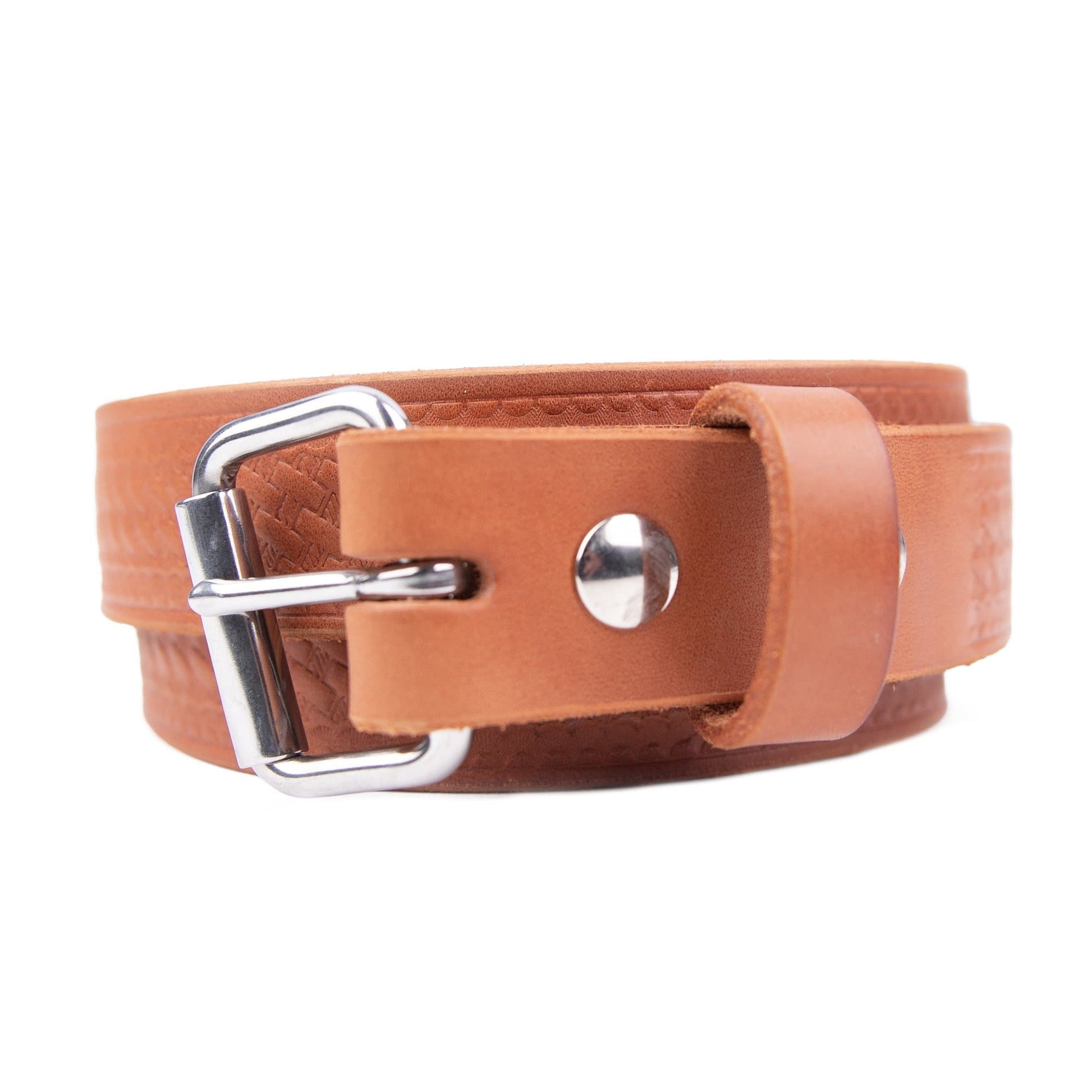 The WK Basket Weave Belt is hand embossed with antique equipment to create an intricate basket weave pattern for a stylish and more formal belt.