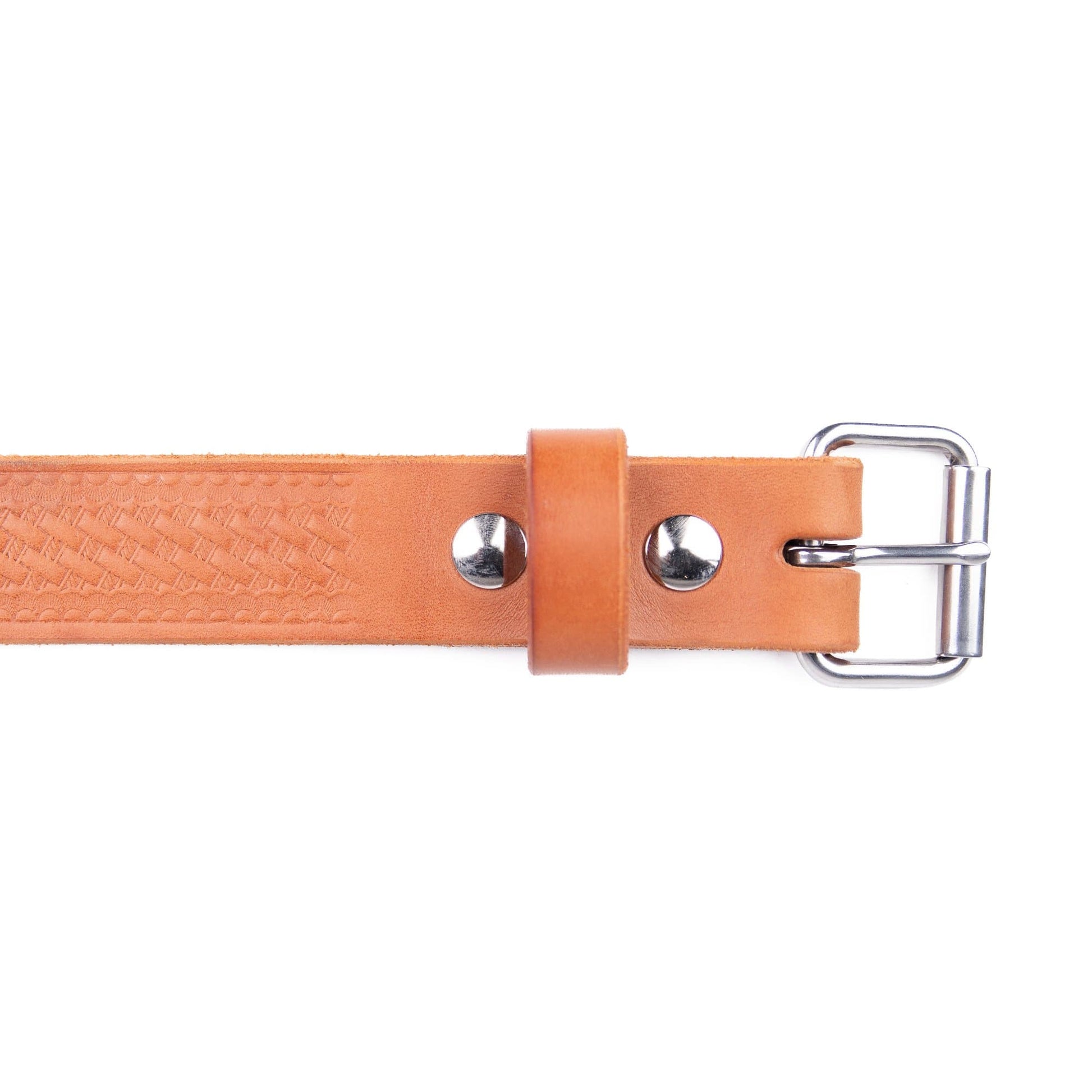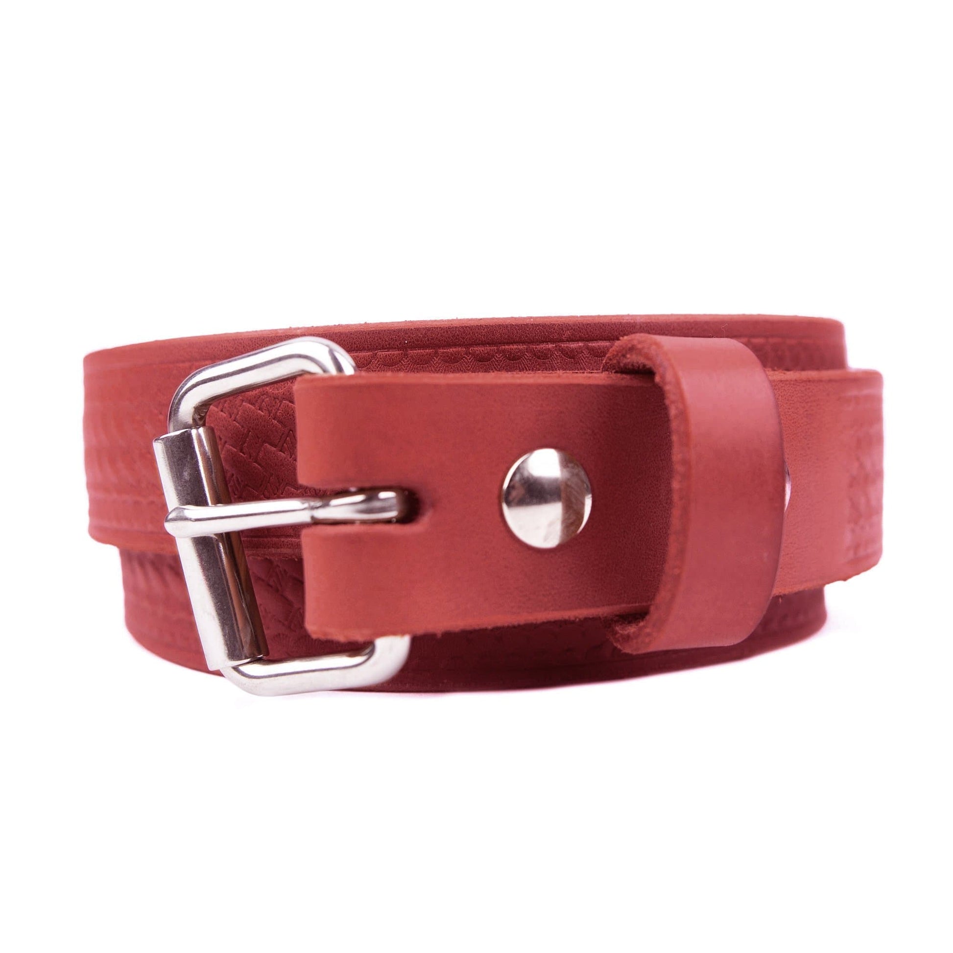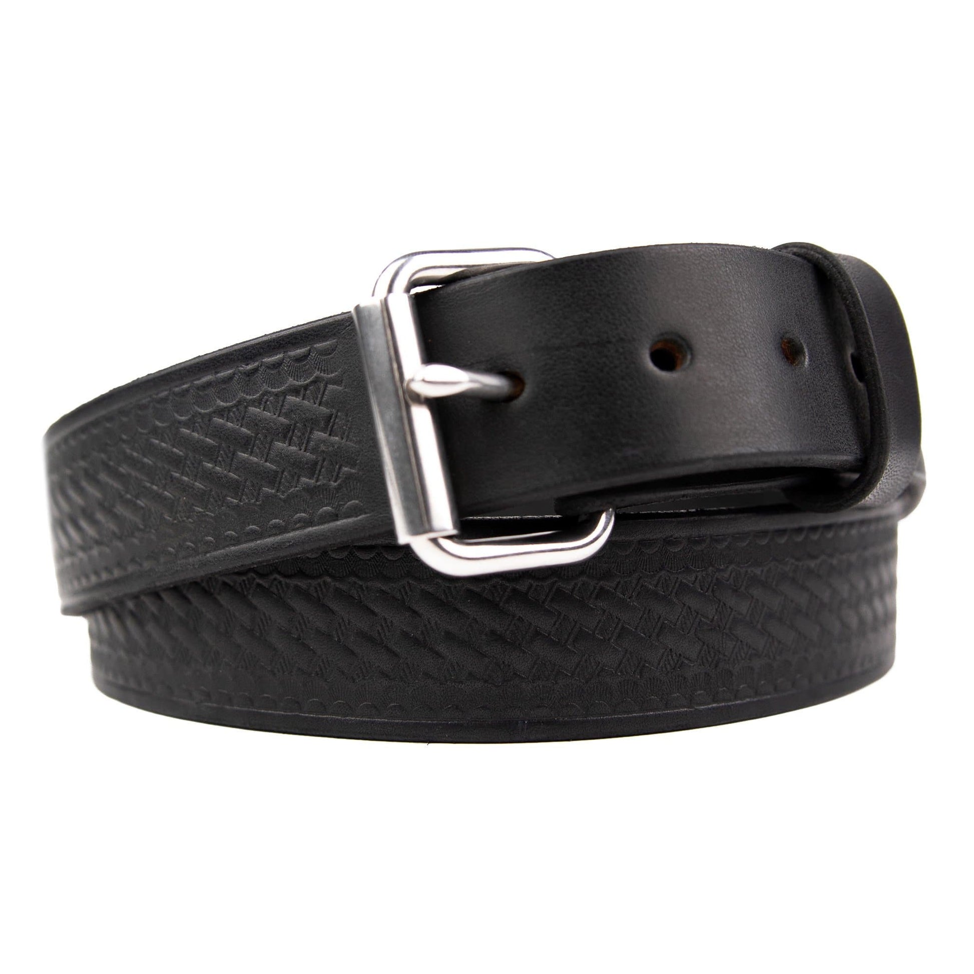The WK Basket Weave Belt is hand embossed with antique equipment to create an intricate basket weave pattern for a stylish and more formal belt.