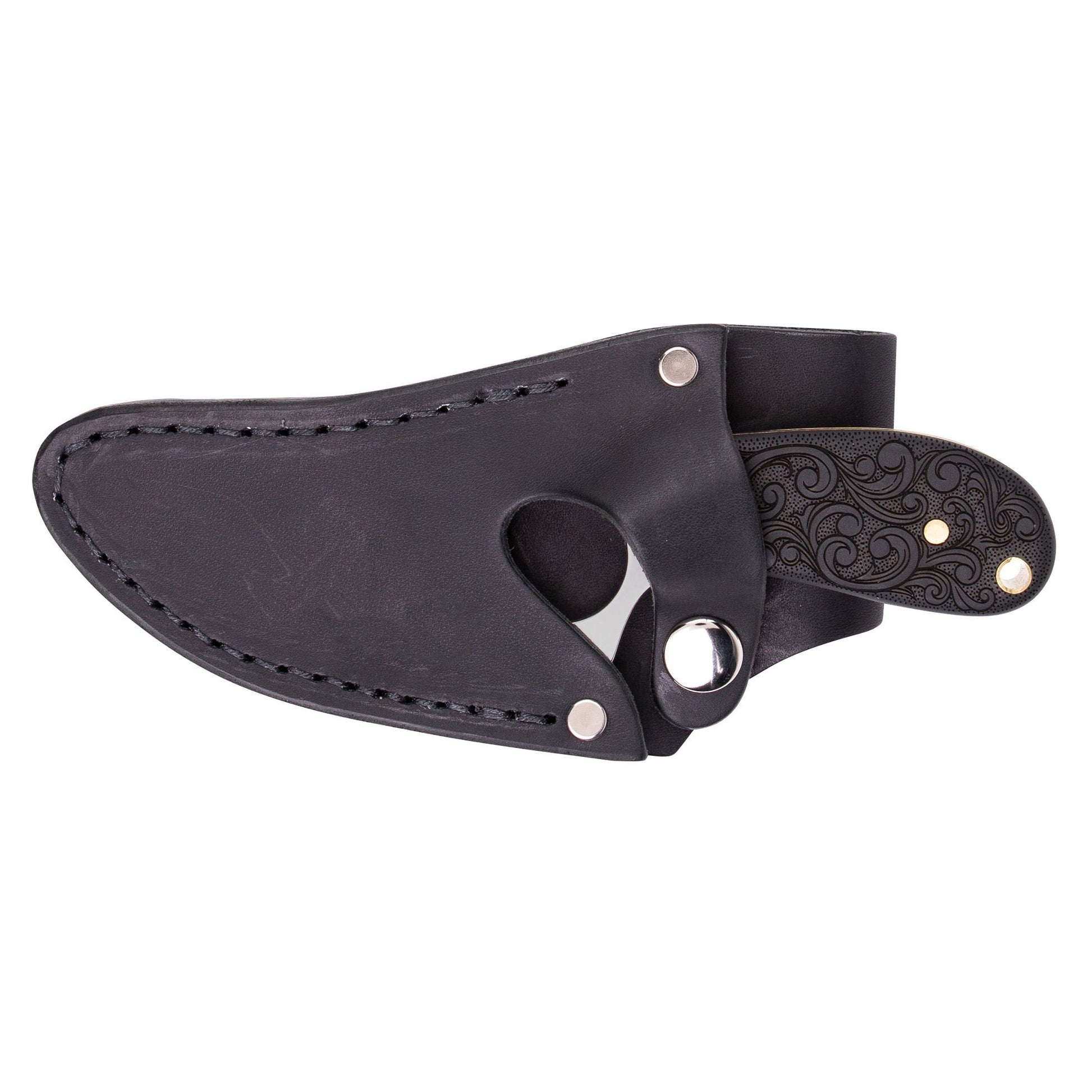 The Blackout Leatherwood model symbolizes a pivotal moment for our brand. It is the culmination of over a decade of dedicated development and craftsmanship. The iconic scrollwork pattern adorning the black resin handle reflects a classic and enduring American design, capturing the essence of our values and our meticulous attention to detail. These models receive special attention in our workshop, highlighting their significance in our product lineup.